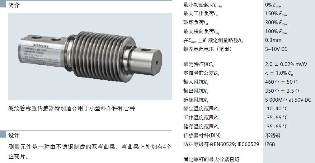 波紋管SIWAREX WL R BB稱重傳感器特別適合用于小型料斗秤和臺秤