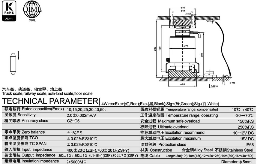 柯力ZSFY-A-30T稱重傳感器功能特點