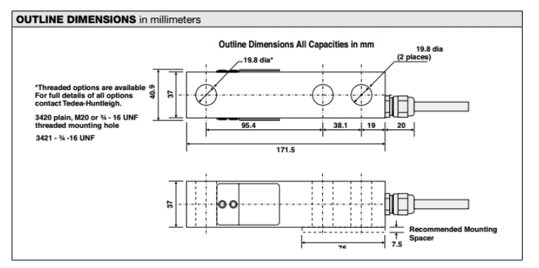 產品名稱:3420-1000LB 3420-2000LB 3420-2500LB稱重傳感器 美國特迪亞Tedeaq0x廣州南創電子科技有限公司