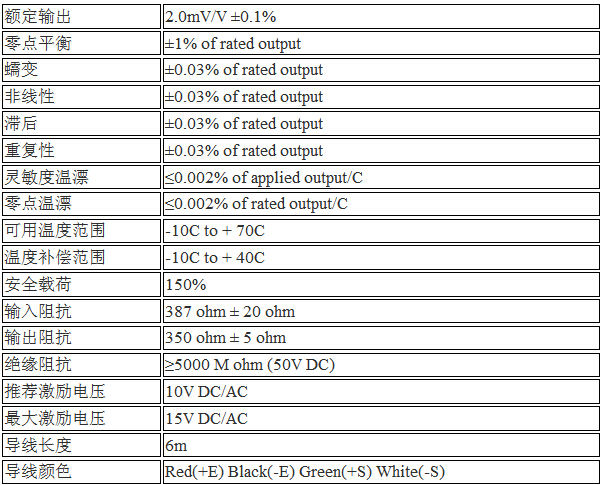美國Transcell稱重傳感器SBT-1T產品參數:6Tk廣州南創電子科技有限公司